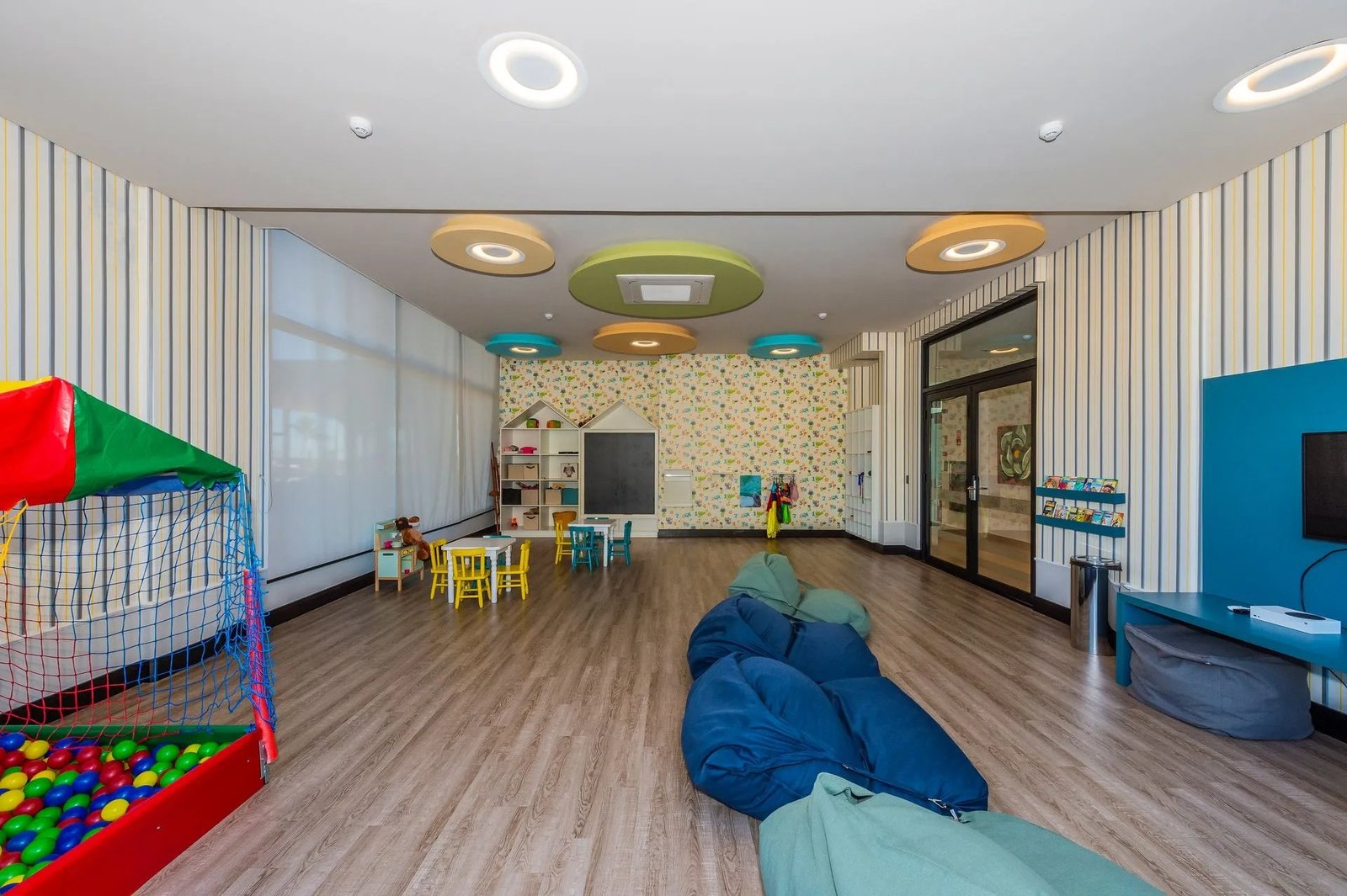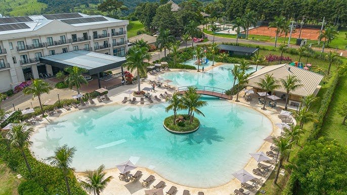 Campo de golfe, restaurante, american bar, piscinas, SPA, quadras, campo de futebol, playground, lago de pesca e trilhas ecológicas.