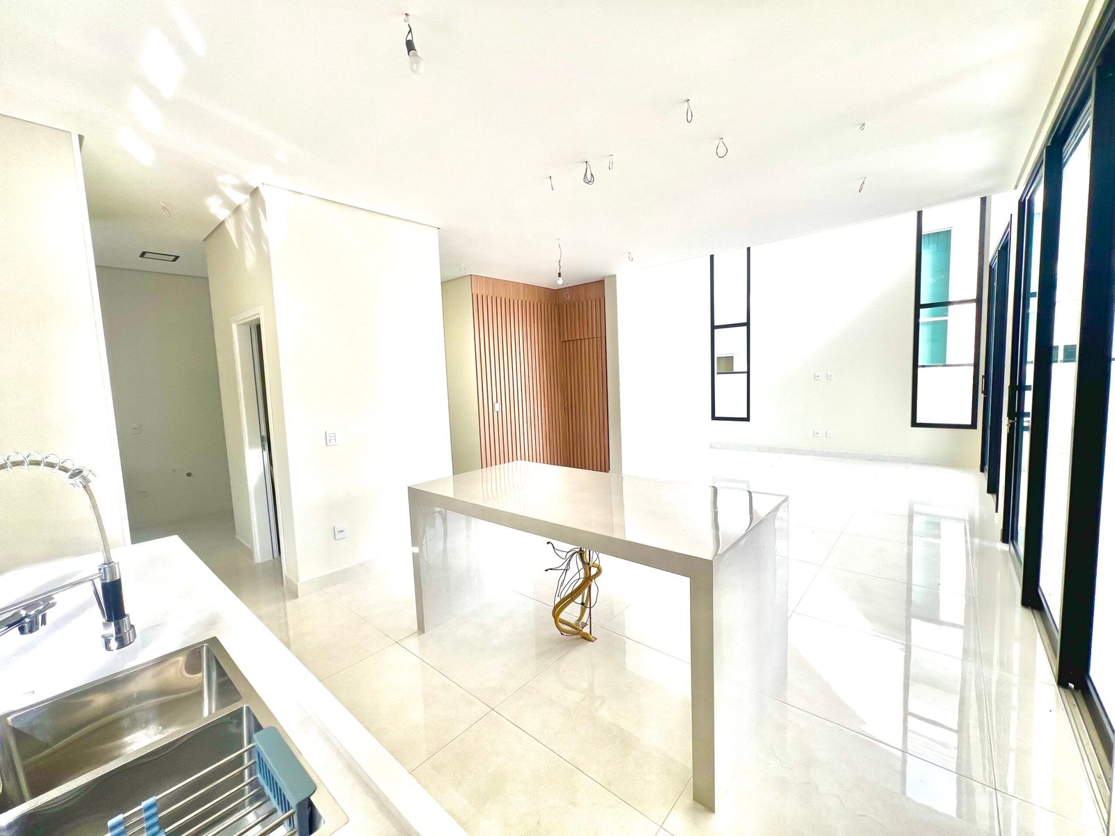 O projeto desta casa no Condomínio Reserva da Serra em Jundiaí é contemporâneo e valoriza ao máximo a iluminação natural. Além disso, os ambientes amplos criam uma sensação de liberdade e bem-estar, destacando a modernidade do design.