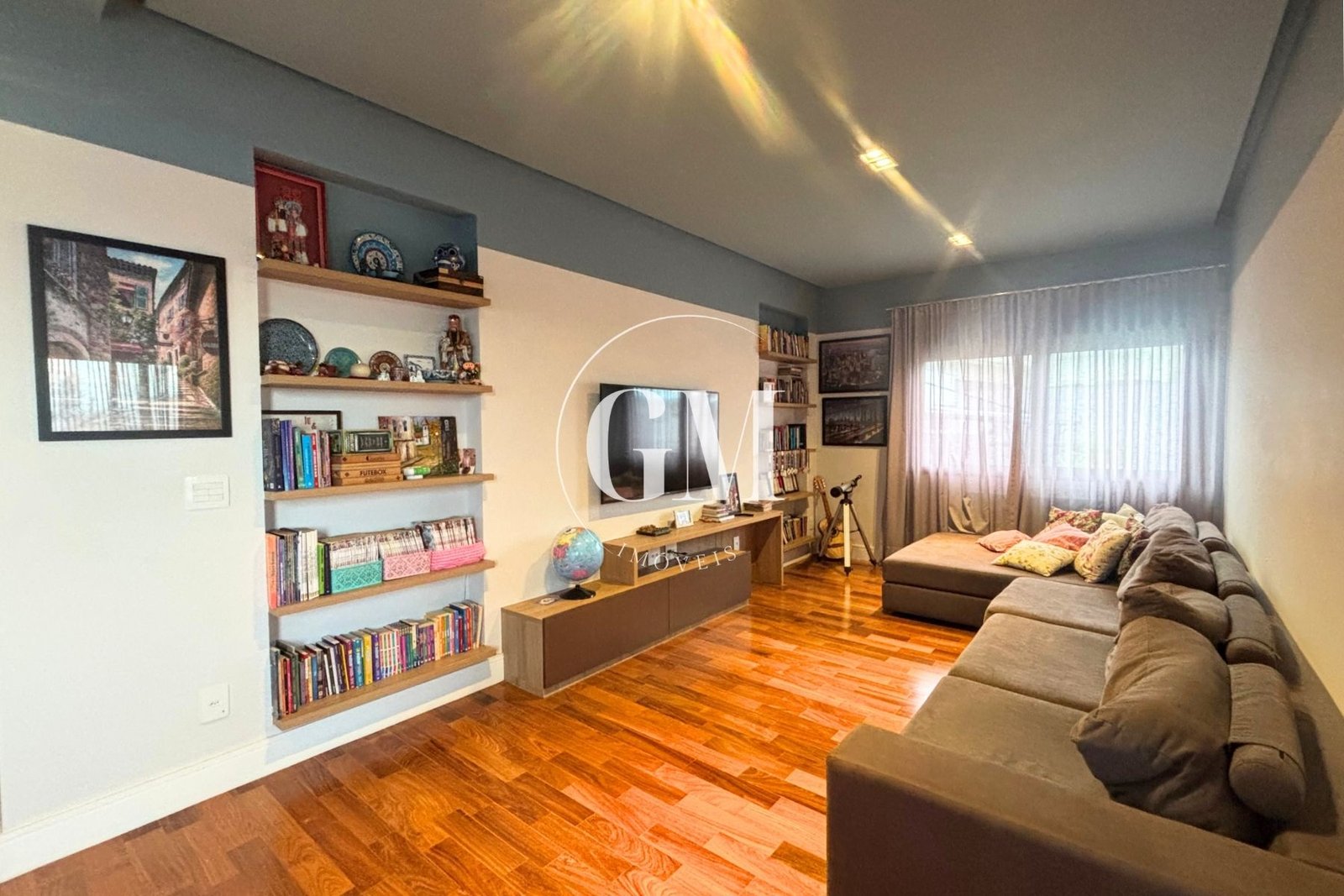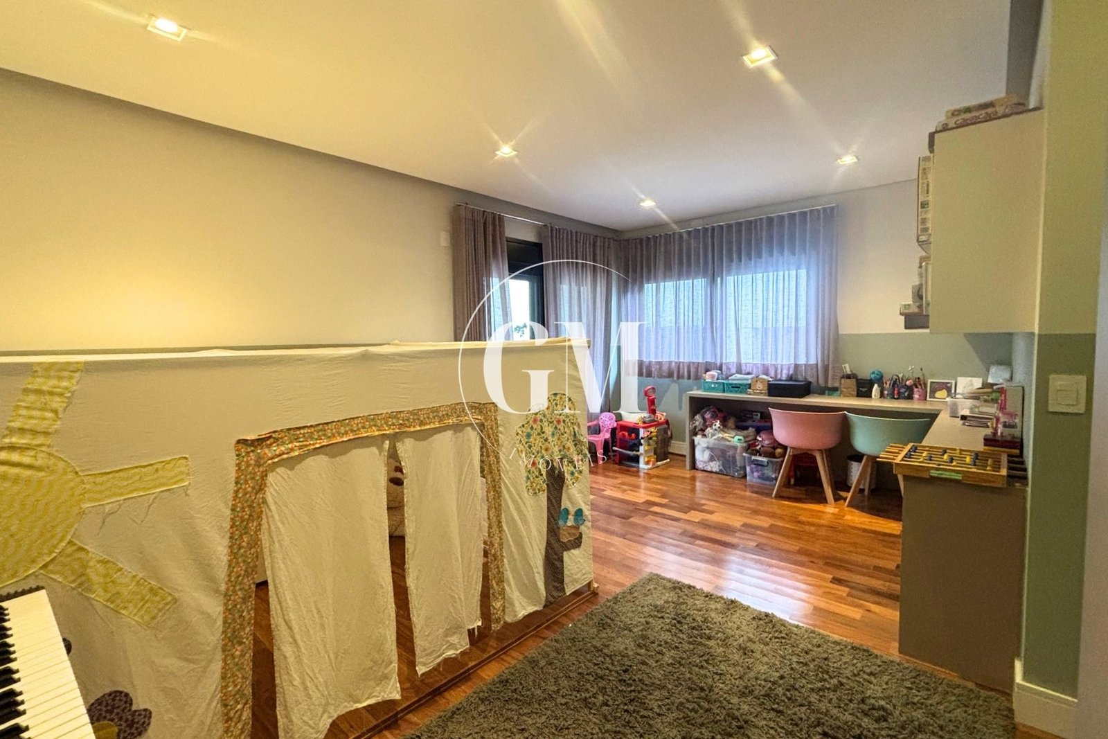 A área íntima e social foi pensada para atender com conforto tanto a rotina familiar quanto o home office. São 4 dormitórios, sendo 2 suítes, além de escritório privativo, sala de TV e ambientes bem distribuídos, que favorecem a circulação e a iluminação natural.
